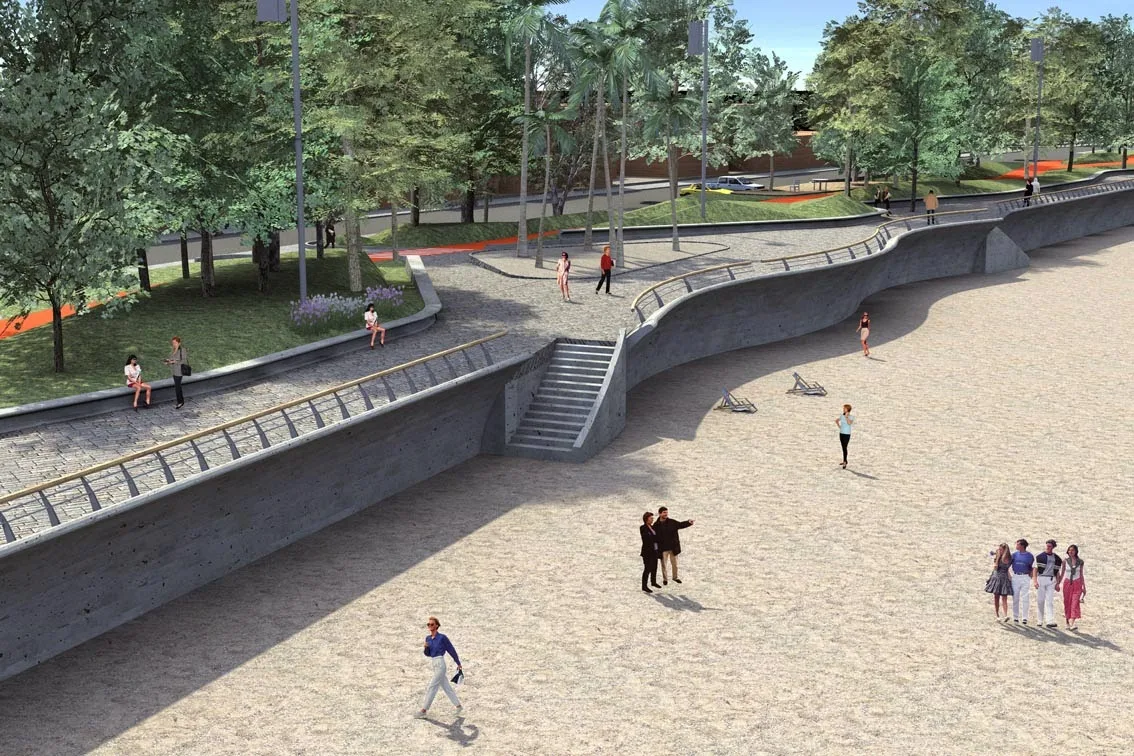 La primera etapa consistió en la construcción de un muro de defensa costera de 2,7 kilómetros, que costó 1.739 millones.